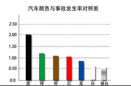 下圖是一個不同各顏色車輛發(fā)生事故的一個概率表,這可是實實在在的數(shù)據(jù):