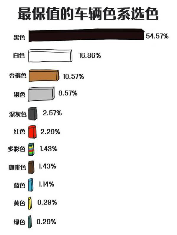 我們再從保值率來談?wù)勈裁搭伾能囎畋V??保不保值其實就是看喜歡的人多不多,喜歡的人多當(dāng)然接手的人就多,有需求量,價格自然就高了,這個道理大家都懂,下面來看一下數(shù)據(jù):